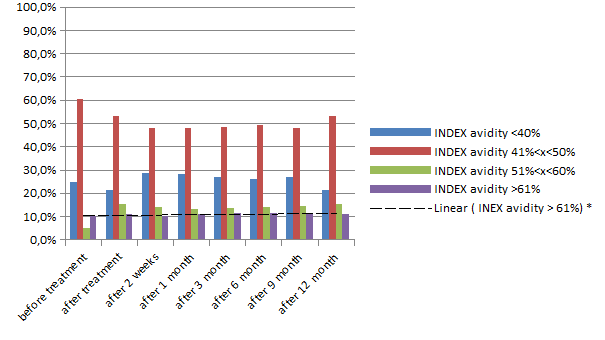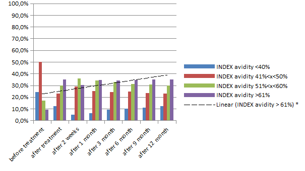 Figure 8. Change of index avidity IgG in a second treatment group (Valtrex + Ferrovir® + 15 mg / ml).